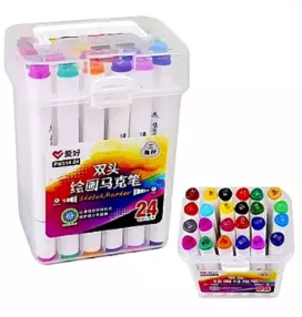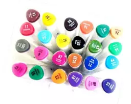 Спиртові маркери для тих, хто захоплюється малюванням і каліграфією, любить створювати комікси і мальовничі ескізи. У наборі маркери різних кольорів. Корпус пластиковий, гладкий. Ковпачки щільно закриваються. Для зручності розпізнавання типу пера кінці маркерів пофарбовані різними кольорами. Кожен колір має свій цифровий код, який нанесений на ковпачок маркера. Чорнило на спиртовій основі добре вбираються в папір, тому рекомендується використовувати щільні листи або картон. Кольори добре змішуються між собою, плавний перехід відтінків.