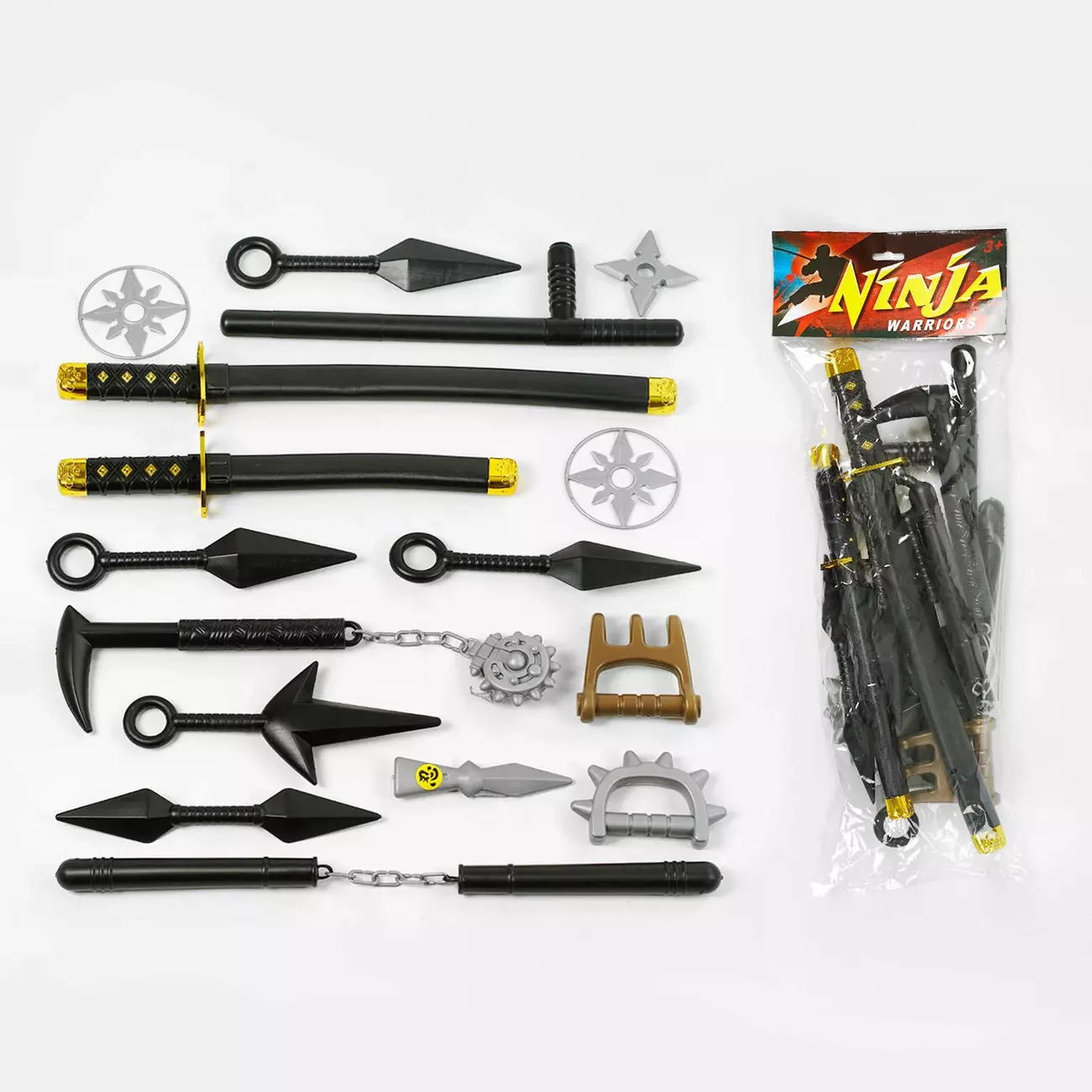 Дещо особливе для прихильників східних єдиноборств: іграшковий набір зброї, якому позаздрить навіть досвідчений боєць! Набір включає 12 видів зброї: катану, нунчаки, лук зі стрілами, сюрикени, текко-каги, кунай, кинджали, текко та інші. Набір героя допоможе хлопчику підвищити свою майстерність володіння зброєю та втілити у життя неймовірні сюжети. Особливості: - набір включає 12 видів східної зброї; - виконаний з первинного пластика; - не містить гострих кутів та є цілком безпечним для дітей; - ігрові елементи мають тематичне забарвлення та відрізняються невеликою вагою.