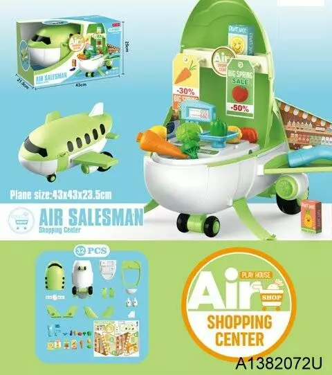 Набір ігровий 10J06 посуд, продукти, 32 предм., кухня-літак, кор., 43-25-21,5 см.