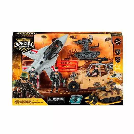 Набір ігровий E3109-24 військовий, позашляховик, літак, стріляє, солдати, кор., 48-30-12 см.