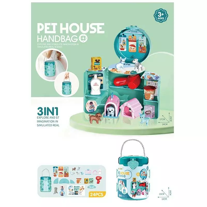 Набір ігровий «грумер» 9128 3в1,24пред.,стіл,тварини,переноска,фен,сумка-колба,карт.обгорт.,16-12-12