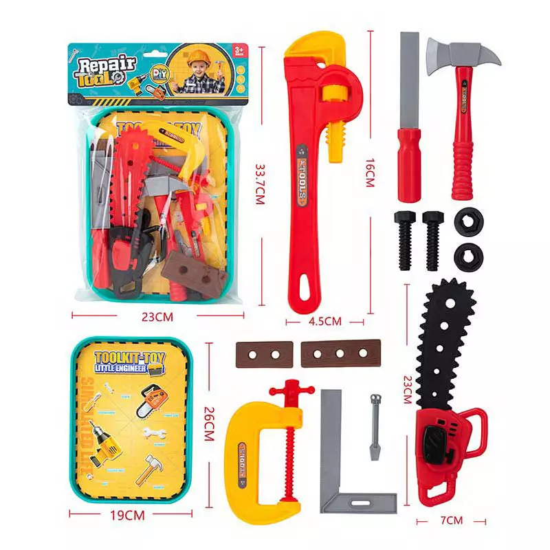 Набір iнструментів 333H-7 бензопила, сокира, розвідний ключ, кутник, кул., 23-34-4 см.