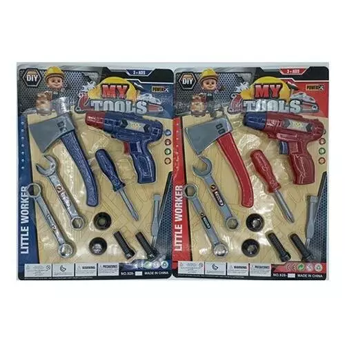 Набір інструментів 928-12 шуруповерт, сокира, ключі, викрутка, болти, гайки,2 кольори,лист,28-38-4см