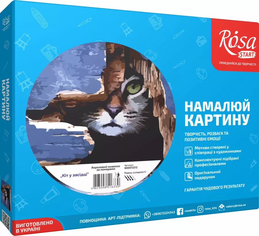 Стати справжнім художником легко завдяки наборам для творчості ROSA START! Процес створення картини дуже захоплюючий і легкий одночасно, адже малювати потрібно по пронумеровані схемою. Контури картини нанесені на полотно, області поділені на окремі сегменти з номерами, яким відповідає номер на баночці з фарбою. Поступово зафарбовуючи їх, Ви отримуєте готову картину! Разом з картинами за номерами ROSA START кожен, незалежно від віку, зможе самостійно писати картини і поступово розкрити в собі талант художника. Саме тому, перше, на що варто звернути увагу при виборі картини за номерами - це рівень складності. Картини за номерами ROSA START в подарунковій коробці мають чотири рівні складності, визначити які можна за допомогою відповідної позначки на етикетці. Склад набору: - полотно на підрамнику 35х45 см з контуром і нумерацією - якісна синтетична кисть ROSA START - 2шт - схема картини - набір акрилових фарб - кольорове зображення картини Набір виготовлений і укомплектований в Україні. Під пильною увагою фахівців він проходить всі життєві цикли, щоб потрапити до Вас в руки. Набори для творчості ROSA START - відмінний подарунок для дітей від 7 років, чоловіків і жінок будь-якого віку. Створюйте свої власні шедеври разом з наборами для творчості ROSA START !!!