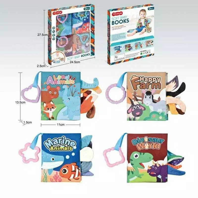Набір книг 66529 (48) 4 книжки, шелестять, об’ємні хвостики, ферма, зоопарк, океан, динозаври, в коробці