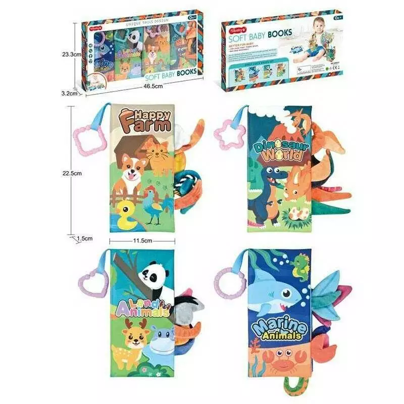Набір книг 66531 (36) 4 книжки, шелестять, об’ємні хвостики, ферма, зоопарк, океан, динозаври, в коробці