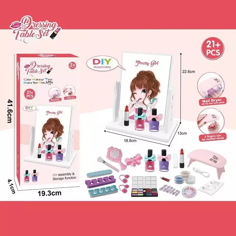 Косметичний набір 769-4 - це справжній рай для маленьких модниць і стилістів, які хочуть створювати нові образи та перетворювати своїх друзів на справжніх зірок. Всередині коробки Ваша маленька майстриня краси зможе знайти безліч цікавих та корисних аксесуарів для роботи: лаки, помаду, тіні, блискітки тощо. А головною особливістю стане розкішне дерев’яне дзеркальце, яке потрібно зібрати самим! Такий набір стане ідеальним помічником у розвитку навичок візажиста, а також виступить родзинкою милої дитячої кімнати! Особливості: - стильний реалістичний набір косметики; - складається з 21+ елементів; - DIY дзеркало; - деталі дзеркала виконані з якісних матеріалів та пофарбовані у білий колір; - справжня LED-лампа з USB-кабелем; - різноманіття косметичних засобів: лаки, тіні, блискітки, помада тощо; - безліч аксесуарів та інструментів для нанесення макіяжу та створення бездоганного манікюру; - набір виконаний з якісних, нетоксичних матеріалів, які є повністю безпечними для шкіри дитини; - дозволить облаштувати в дитячій кімнаті чарівний куточок краси; - щоб видалити макіяж, потрібно протерти обличчя серветкою або ватним диском, потім змити залишки косметичних засобів милом, очищувальним лосьйоном або теплою водою. - косметика рекомендована дітям від 3 років і старше.