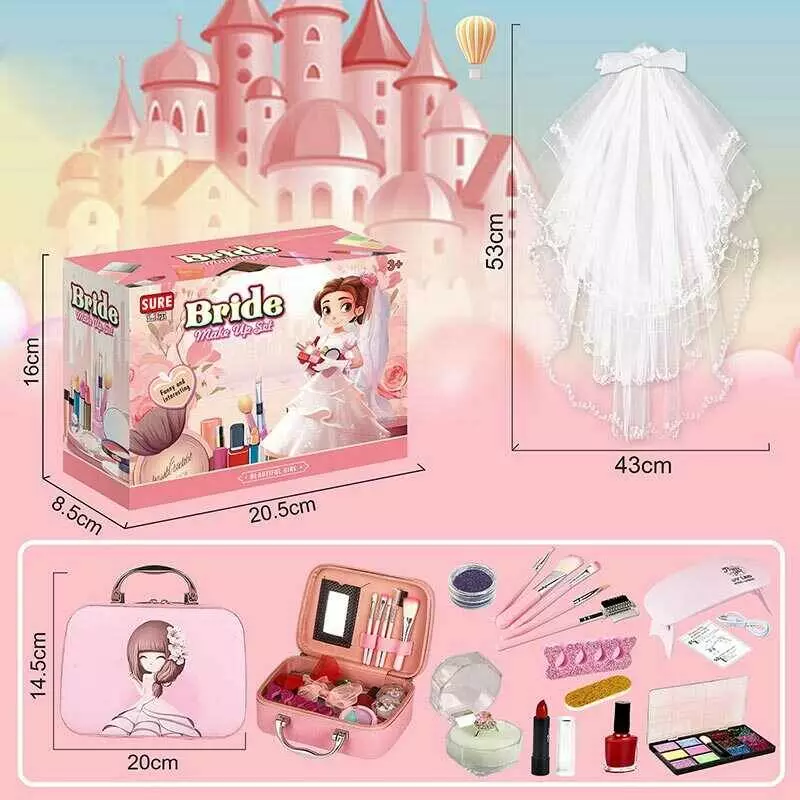 Набір косметики 90023 (60/2) фата, пензлики, каблучка, тіні, лампа для манікюру, глітер, лак, помада, в коробці