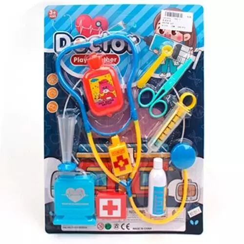 Набiр лiкаря 001-1 стетоскоп, медичні інструменти, 10 предм., 2 кольори, лист, 25-35-2,5 см.