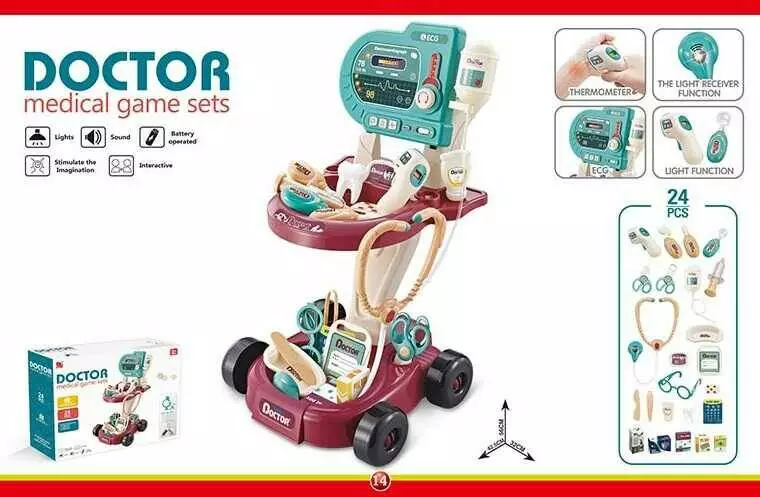 Набір лікаря 660-87 (12) 24 предмети, ""Апарат реанімації"", світло, звук, у коробці