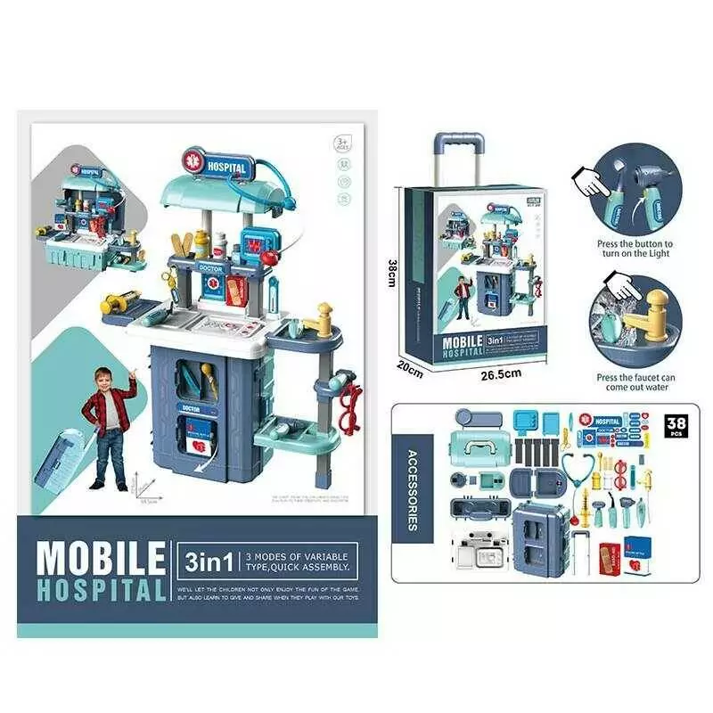 Набір лікаря 8123 B (12) висота 73 см, 20 аксесуарів, підсвічування, помпова подача води, стетоскоп, термометр, молоточок, в коробці