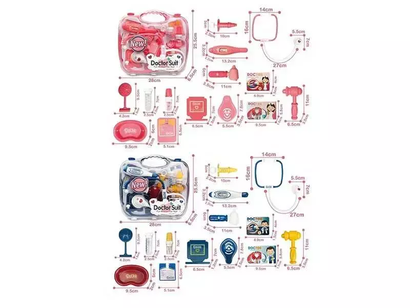 Набір лікаря 8807-10 / 8807 A10 (36/2) 2 види, стетоскоп, інструменти, муляжі упаковок з ліками, бейджик пацієнта, у валізі