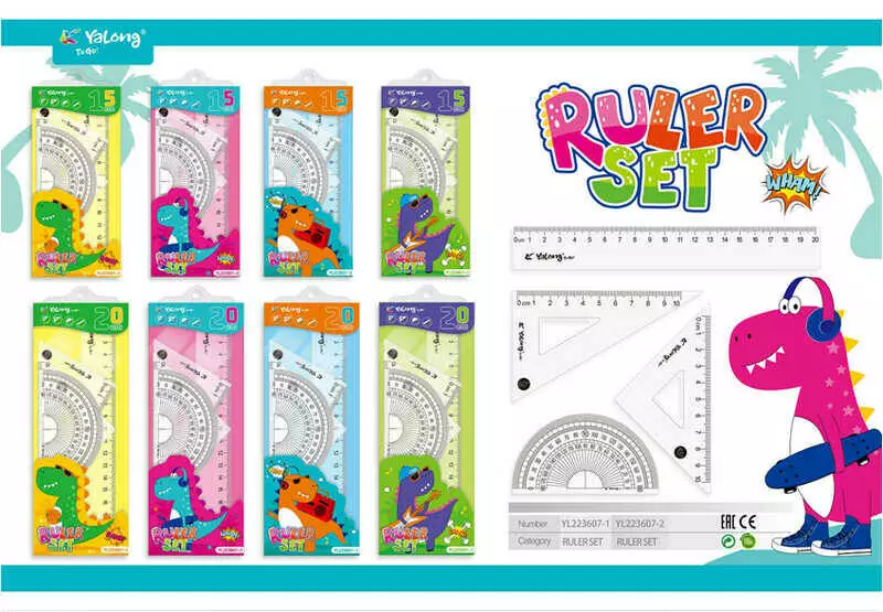 Набір лінійок C 62143 (480) ВИДАЄТЬСЯ ТІЛЬКИ МІКС ВИДІВ 4 штуки, лінійка 20 см, 2 косинці, транспортир, в пакеті