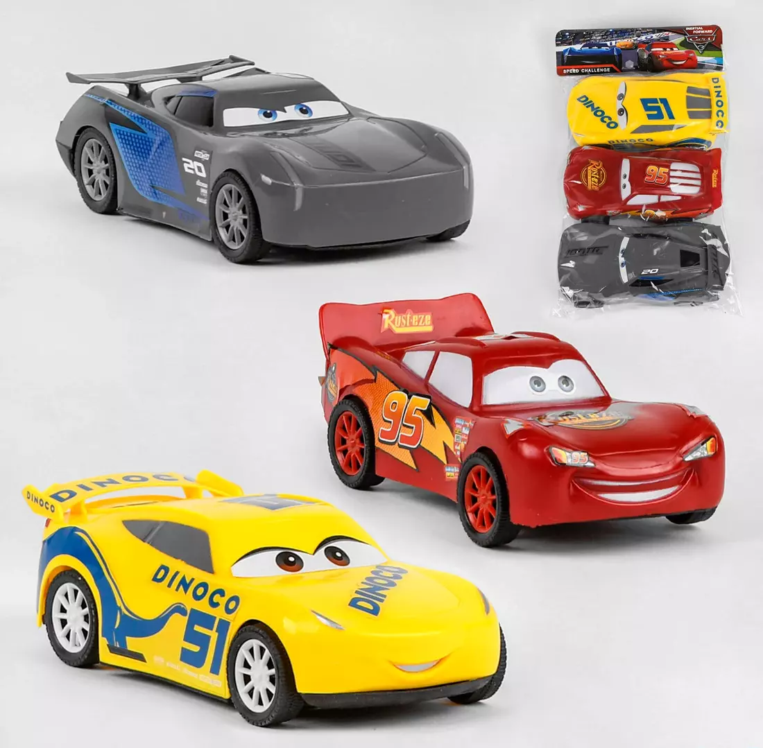 Перегони, тачки, швидкість – пристрасть усіх хлопців. Вдвічі крутіше, коли нові машинки 39788 - це улюблені герої з уподобаного мультфільму про найшвидші тачки сучасності. Обирай свою, виїжджай на старт, тисни на газ і перемагай у заїздах. Особливості: - відповідає технічному регламенту безпеки іграшок; - виконана з якісних полімерних матеріалів; - в набір входять 3 барвисті машини; - відповідають своїм мультиплікаційним героям; - машинки оснащені інерційним механізмом руху; - матеріал – пластик. Бажаєте порадувати свою дитину захопливим та недорогим подарунком?! Тоді ви, напевно, не повинні залишити цей набір без уваги. Барвисті герої готові виїхати на трек і показати, хто з них найшвидший. Інерційний механізм додасть швидкості та драйву на шляху до заповітного фінішу. Всі три машини виконані дуже реалістично. Набір допоможе тренувати уяву, розігруючи різні сюжети та підкорюючи будь-які дороги. Це прекрасна гра для цілої компанії, де кожен боротиметься за своє перше місце. Комплектація: - 6 пластикових машинок у кульку.