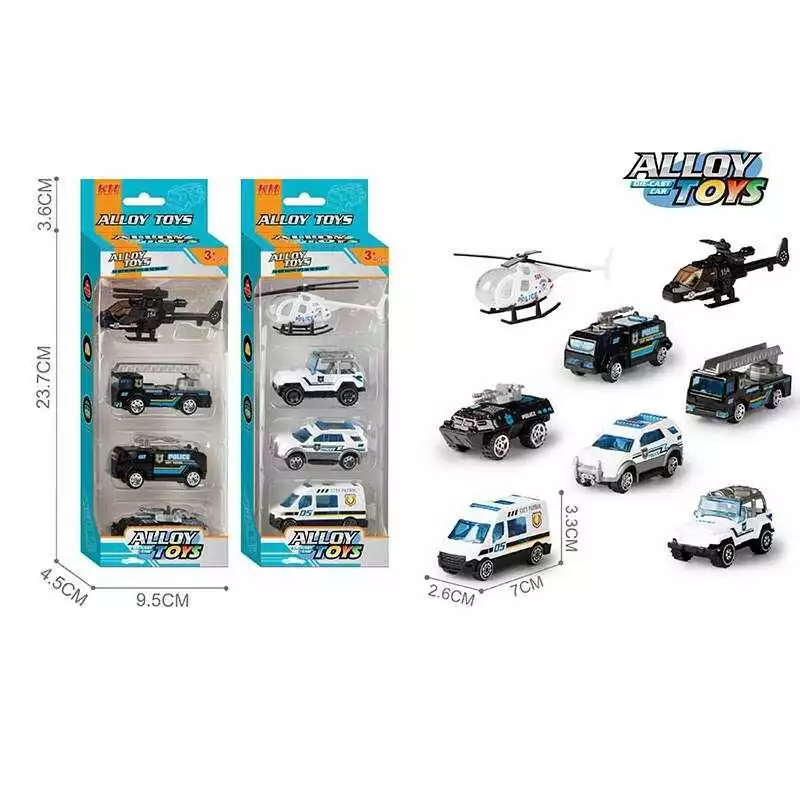 Набір машин 667-4 D (192/2) 2 види, 4 штуки, металопластик, ""Поліція"", в коробці