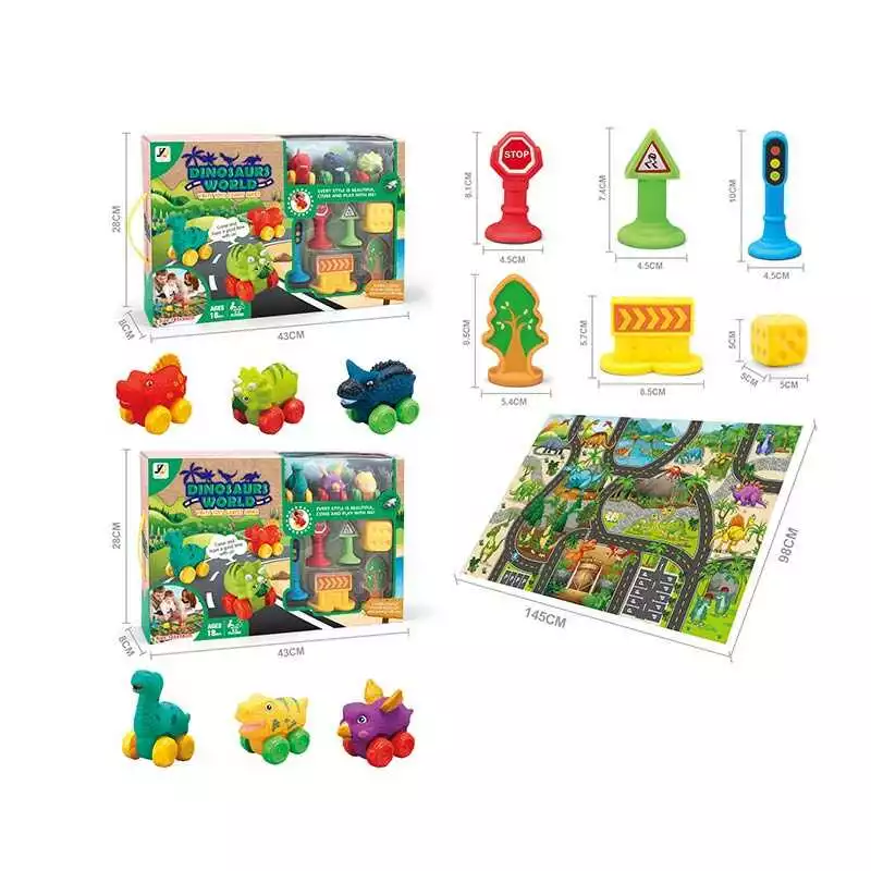 Набір машин JZD - 108 (12) 2 види, динозаври, ігровий килимок 145х98 см, 3 машинки, декорації, в коробці