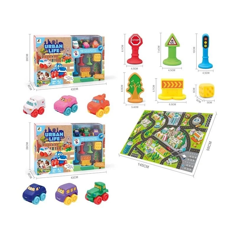 Ігровий набір JZD - 117, серія "Urban life" - чудова іграшка для найменших. Виробник представляє захопливий ігровий килимок з набором незвичайних вінілових машинок - спецтранспорту, які стануть улюбленою компанією вашого малюка вже з 18 місяців. Особливості: - відповідає вимогам технічного регламенту безпеки іграшок; - виконаний з якісних полімерних матеріалів; - призначений для активного розвитку дитини; - розвиває фантазію, дрібну моторику та навички взаємодії; - набір представлений у вигляді ігрового килимка з принтом вулиць та доріг, вінілових декорацій, а також 3-х вінілових машинок; - цікавий дизайн машинок з милими мордочками; - всі ігрові елементи виготовлені з м'якого вінілу, дуже приємні на дотик і не мають гострих країв; - розмір ігрового килимка - 145 * 98 см. Комплектація: - ігровий килимок; - 3 машинки; - елементи декорацій.