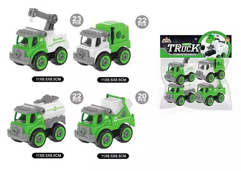 Набір машин LY 038 (72) 4 штуки, конструктор, викрутка, у пакеті