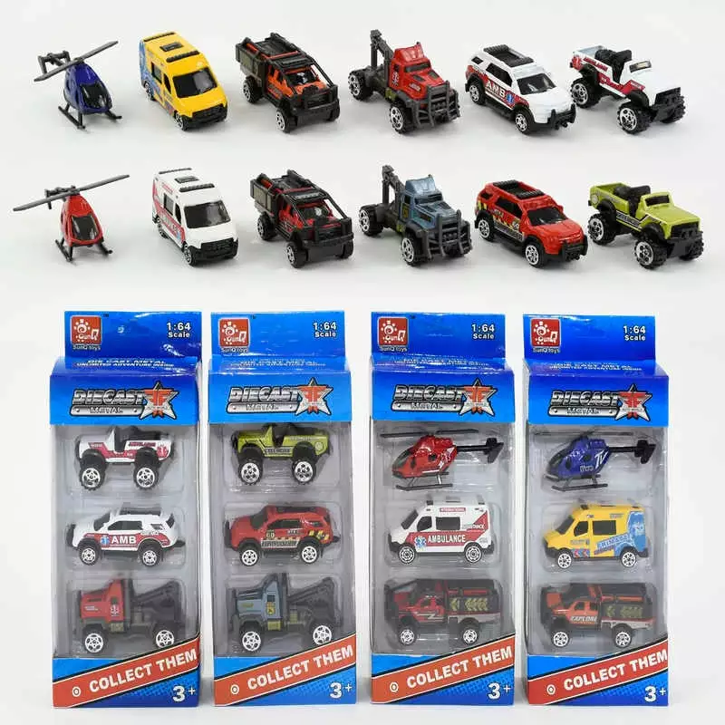 Набір машин металопластик SQ 80981-5 (168/2) 4 види, 3шт у коробці