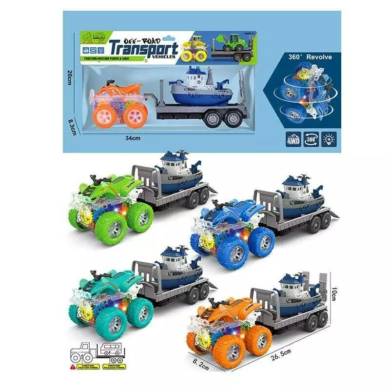 Набір машин YM 1109 G1 (120/2) 4 види, 2 машинки, причіп, інерція, повний привод, підсвічування, в пакеті, ВИДАЄТЬСЯ ТІЛЬКИ МІКС ВИДІВ