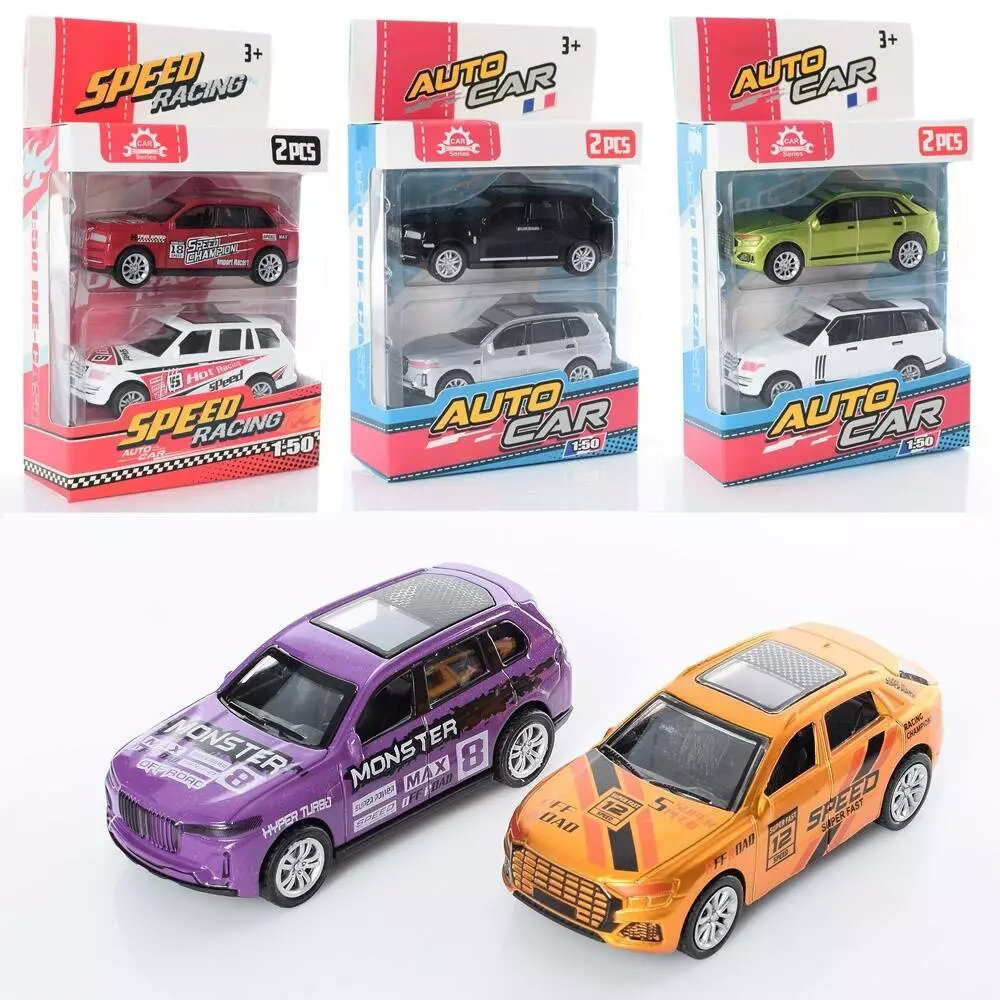 Набір машинок 322-1-3 мет., інерц., 2 шт., 1:50, гум.колеса, 4 види, кор., 12-14,5-4,5см.