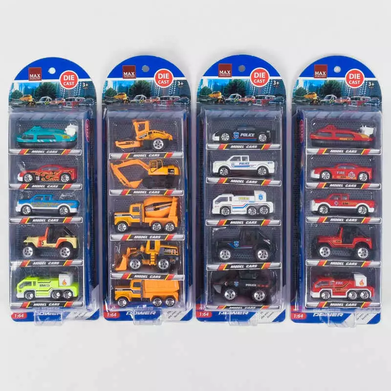 Набір машинок 730 (96/2) 4 види, спецтехніка, металопластик, масштаб 1:64, металопластик, на листі