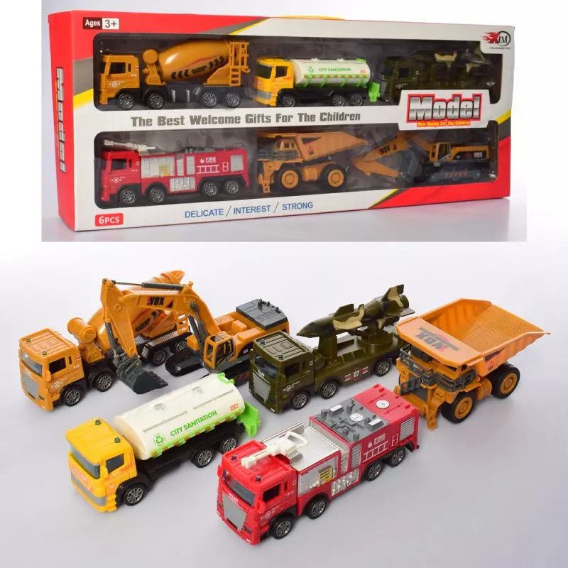 Набір машинок 83044 6 шт. (будтехніка, військова, пожежна, бензовоз), кор., 55-22-8,5 см.