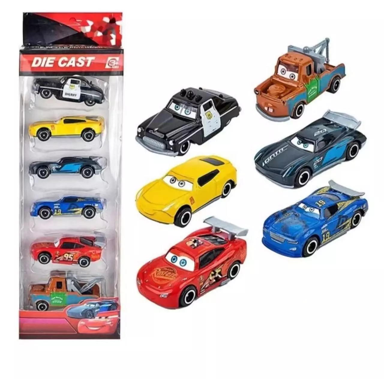 Дитячі металеві машинки модельки іграшки Блискавка Маквін, комплект із героїв мультфільму Тачки 3 6 шт. Комплект є прекрасним набором з 6 машинок героїв мультфільму Тачки 3, який обов'язково приверне увагу Вашої дитини. У колі друзів можна організувати справжнє змагання у спритності із запуску машинок. Довжина моделей становить до 7 см. Кожна з них має свій унікальний і деталізований дизайн. Як матеріал кузова використовується метал і пластик.