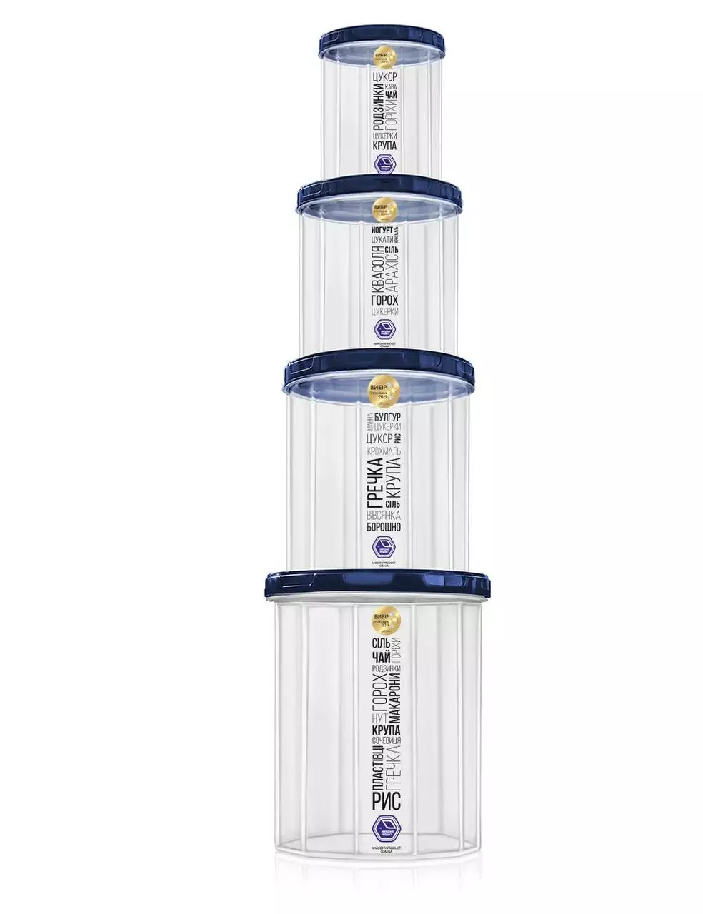 Набір ємностей для сипучих продуктів 0,65л+1,0л+1,5л+2,0л (індиго)