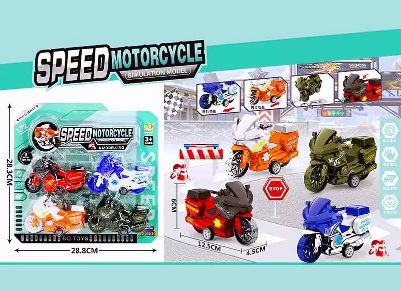 Набір мотоциклів BQ 600-52 (96/2) 4 штуки, інерція, масштаб 1:72, на листі