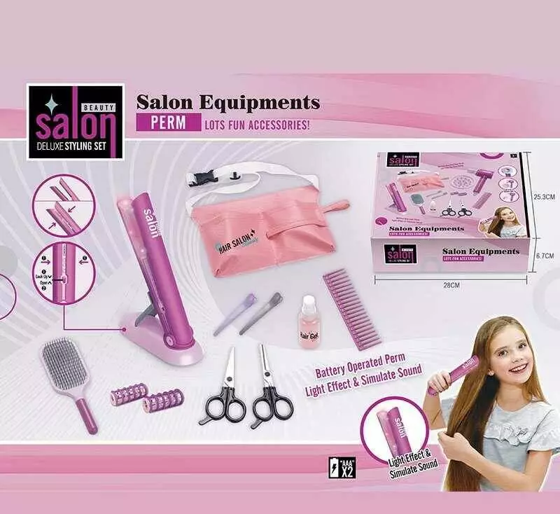 Набір перукаря YLQ 085 A (60/2), стайлер, звук, підсвітка, ножиці, бігуді, 2 заколки, 2 щітки для волосся, перукарський фартух, в коробці