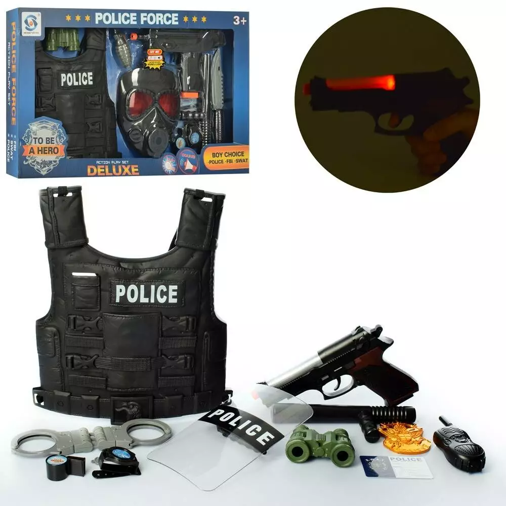 Набір поліцейського HSY-032-33 жилет, зброя, 2 види, світло, муз., бат. (табл.), кор., 60-34-5,5 см.