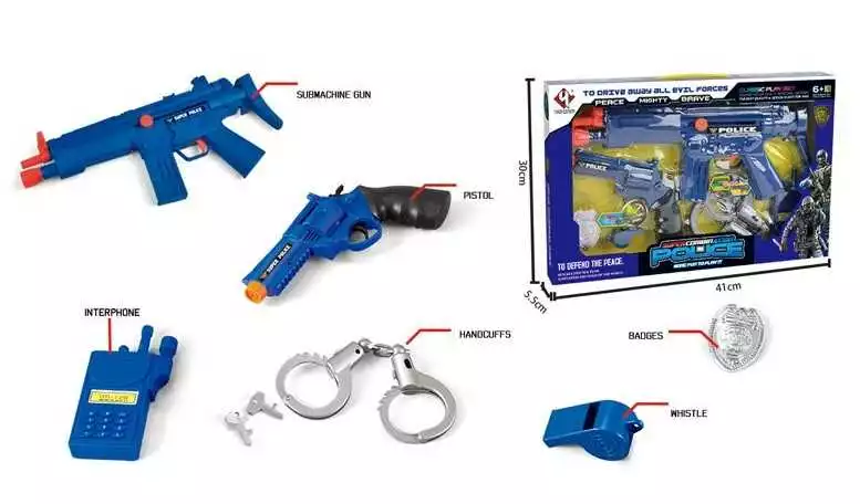 Набір поліції P 014 (24) 7 елементів, автомат із тріскачкою, револьвер, кайданки, свисток, аксесуари, у коробці
