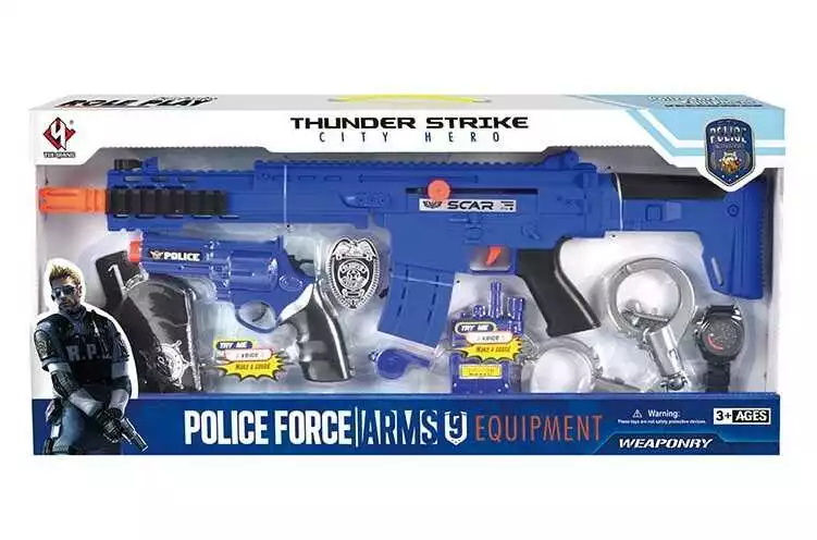 Набір поліції P 018 A (24/2) 9 елементів, автомат з тріскачкою, пістолет, кобура, наручники, аксесуари, в коробці