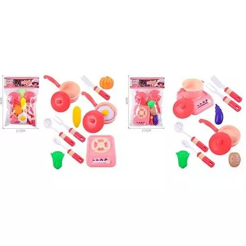 Набір посуду 111-18A-19A плита,кастрюля,сковорідка,продукти,кухонні прилади,2 види,кул.,21,5-31-6см.