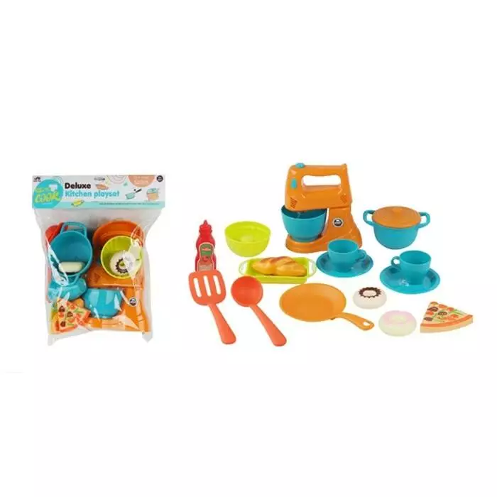 Набір посуду 523C міксер, кастрюля, чашки, продукти, кул., 33-28-6 см.