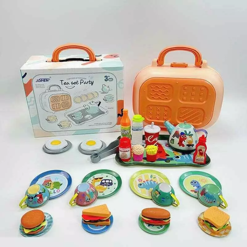 Набір посуду 86-20 SEH (24) ""Динозаври"", металевий посуд, чайник, таця, чашки, тарілки, блюдця, у валізі, продукти, в коробці
