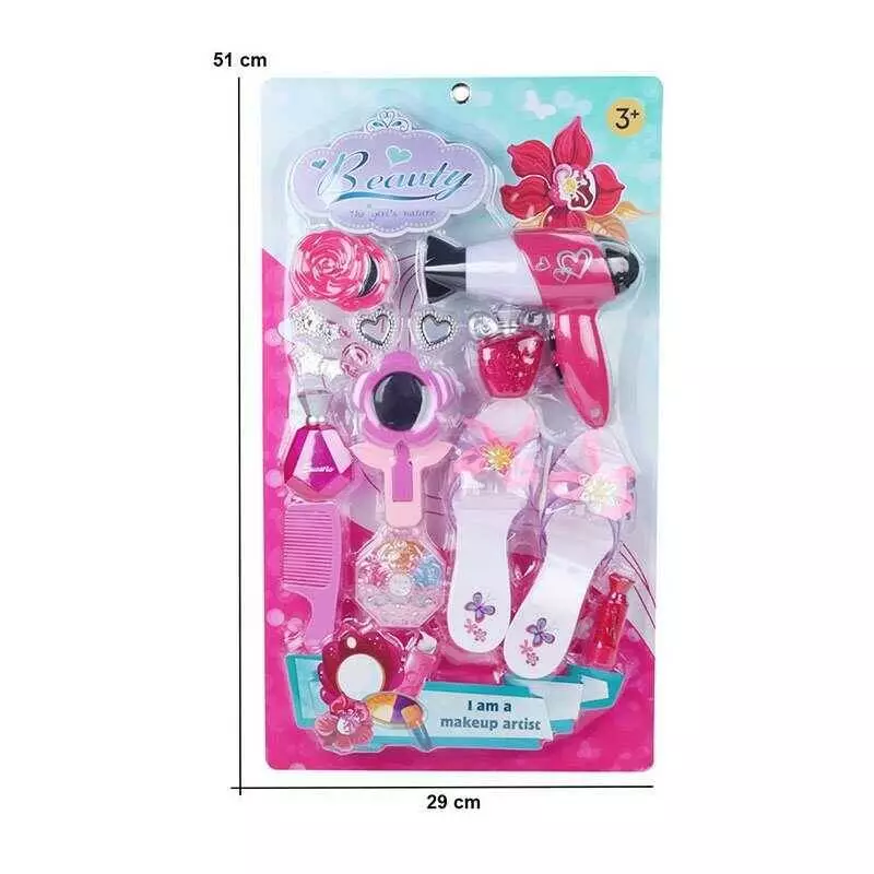 Набір прикрас BE 102 (36/2) фен, парфуми, сережки, шпильки, дзеркальця, гребінець, тіні, помада, туфлі, на листі