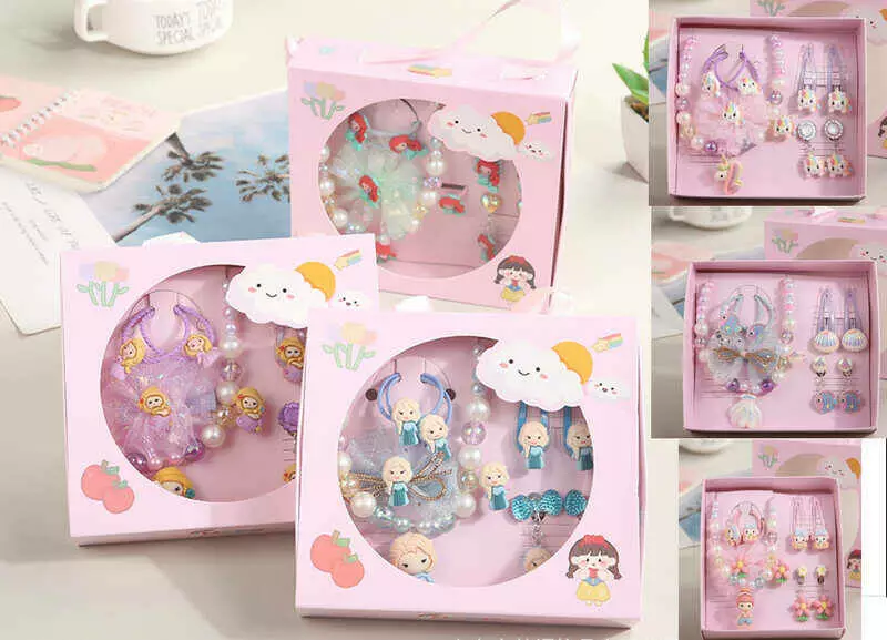 Набір прикрас C 63944 (260) 3 види, “Принцеси”, намисто, сережки-кліпси, резинка, шпильки, каблучка, в коробці, ВИДАЄТЬСЯ ТІЛЬКИ МІКС ВИДІВ