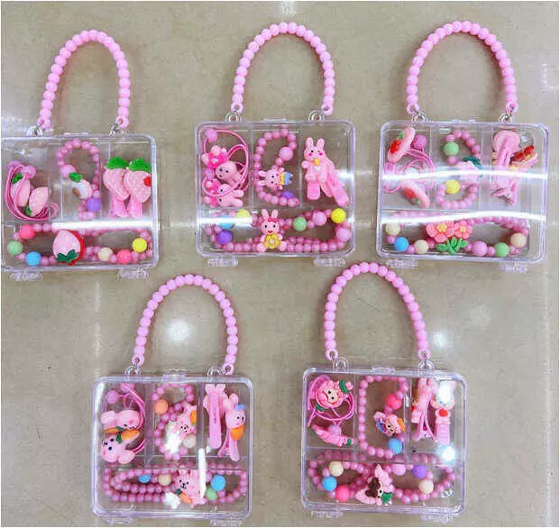 Набір прикрас C 63953 (480) 4 види, ВИДАЄТЬСЯ ТІЛЬКИ МІКС ВИДІВ, шпильки, намисто, браслет, резинки для волосся, в сумці