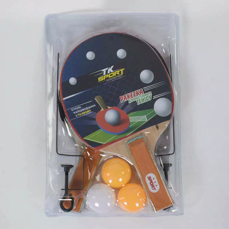 Набір ракеток С 34430 для пінг-понгу (50) ""TK Sport"" сітка, 2 ракетки + 3 м'ячі, в слюді