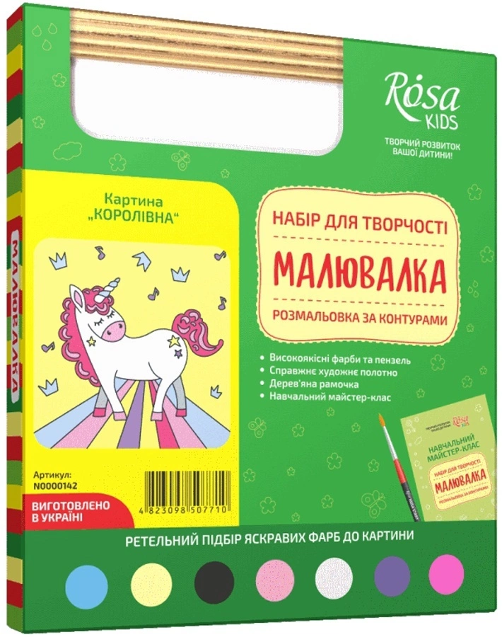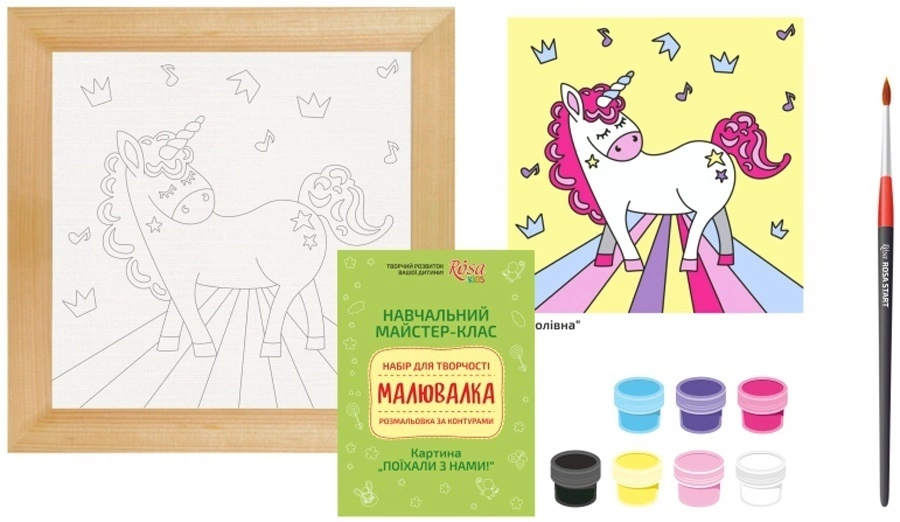 Розфарбування по контурах «Малювалка» створена спеціально для юних художників! Вона легко поєднує заняття творчістю з позитивними емоціями і допоможе дитині зануритися в дивовижний і захоплюючий світ мистецтва! Переваги акрилових фарб: не мають запаху; не жовтіють і не тріскаються; швидко сохнуть на полотні; добре змішуються між собою. Набори для творчості МАЛЮВАЛКА - це 1. Широкий вибір мотивів 2. Яскраві кольори. 3. Високоякісні матеріали 4. Майстер-клас з докладним описом змішування кольорів. 5. Прекрасний подарунок. 6. Старт дитини в майбутнє мистецтва! У наборі: Акрилові фарби 7х5 см3 з ретельним підбором яскравих кольорів до картини; Високоякісна кисть; Художнє полотно на картоні з контуром малюнка, 20х30 см; Дерев'яна рамочка; Навчальний майстер-клас.