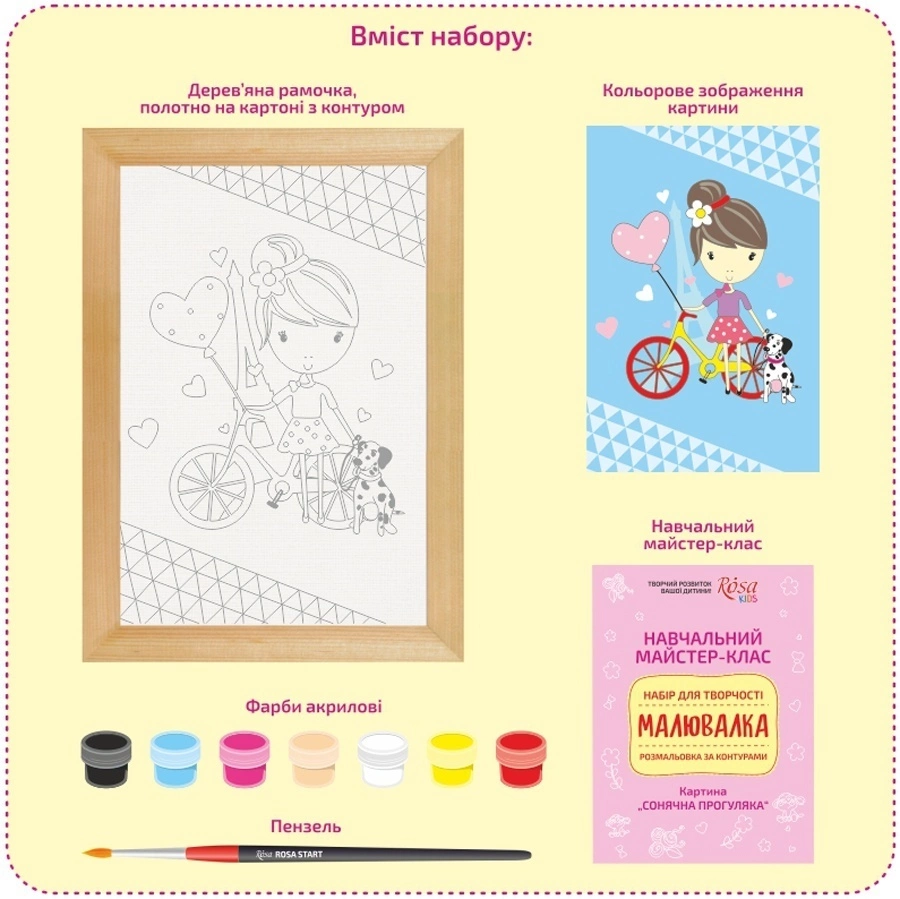 Набір, розмальовка за контурами "Малювалка", "Сонячна прогулянка", 20*30 см, ROSA KIDS