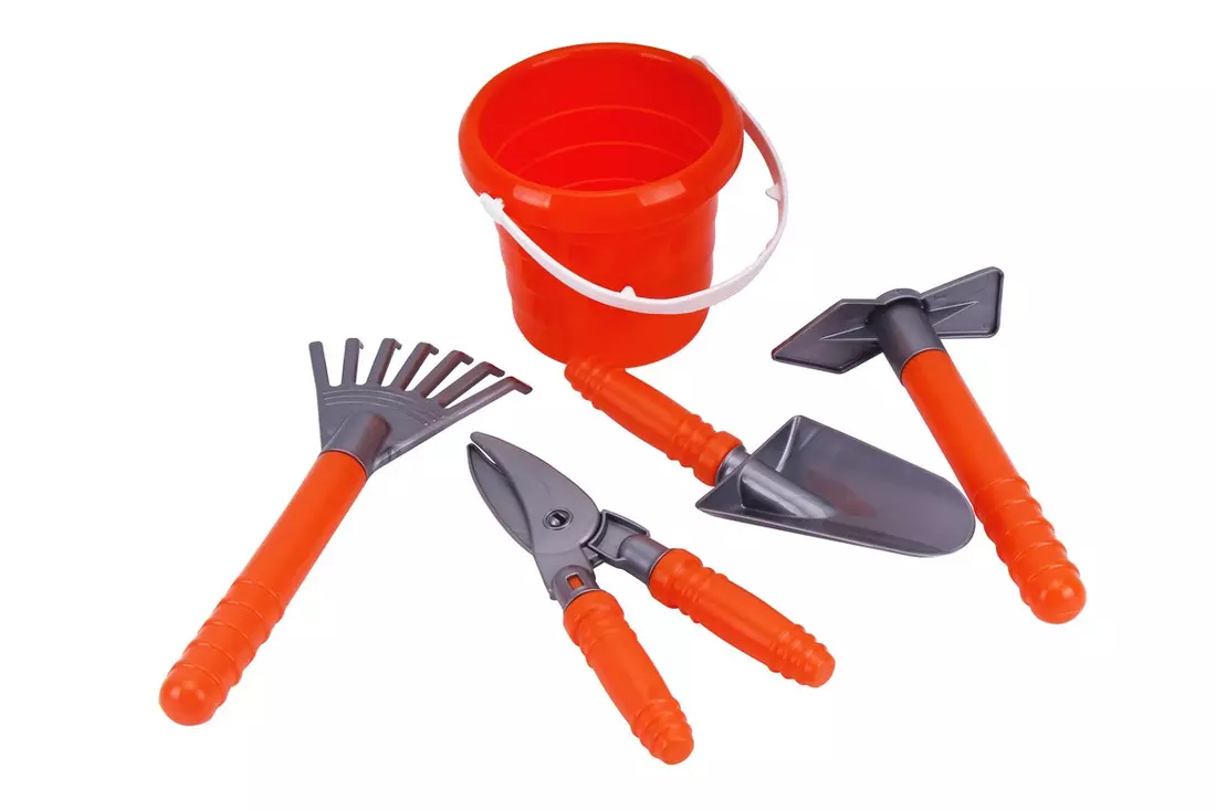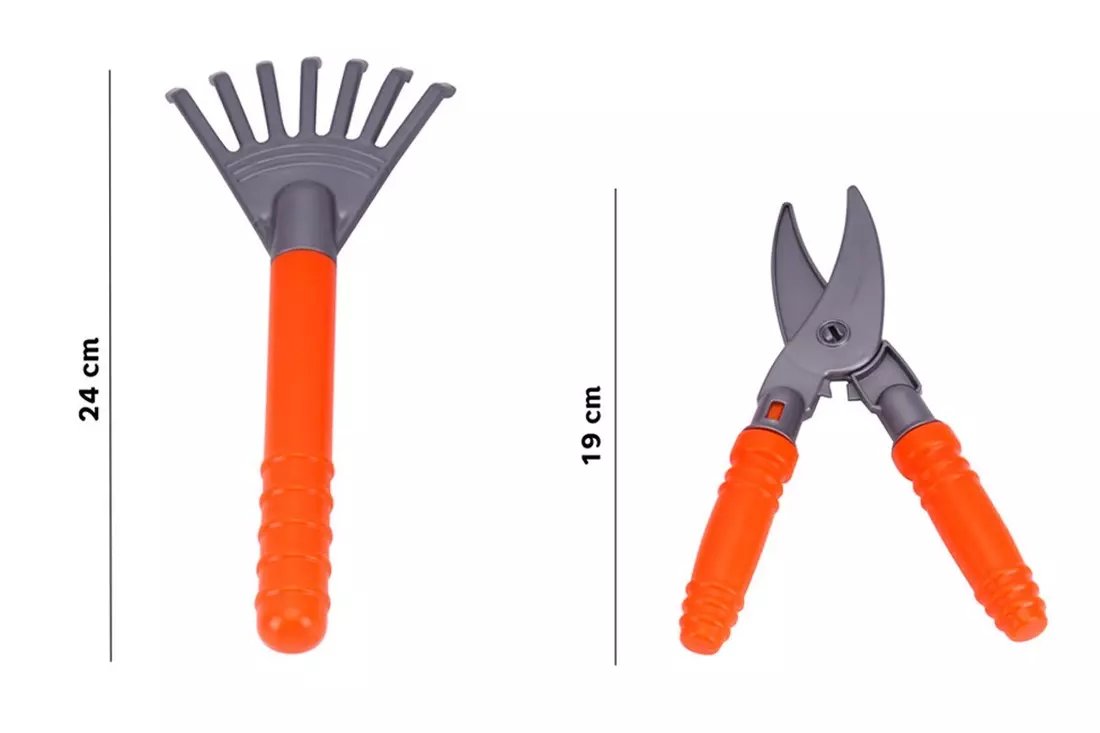 Тепла пора року – найкращий час, щоб більше гуляти надворі, гратися в пісочниці, купатися у басейні та копати м'яча. А ще дітки охоче допомагають батькам, бабусі та дідусю у саду та на городі. Поратися на клумбі, пересадити квіти, підстригти кущі та зібрати урожай – завжди є багато роботи. І для маленьких садівників набір спеціальних інструментів для садових робіт: секатор для підрізання кущів великий совок для квітів граблі та сапка для розпушування ґрунту яскраве відерко Сюжетно-рольові ігри розвивають у дітей уяву та фантазію, мислення, дрібну моторику, комунікативні та соціальні навички. Дітки, граючись з батьками вивчають нові слова: назви предметів, різноманітних продуктів, кольорів та форм. Іграшки безпечні для малюків, виготовлені з міцного якісного пластику без запаху, не містить фталатів і BPA. Пакування - сітка з картонною етикеткою. Для дітей від 3-х років. В наборі: секатор – 1 шт., совок – 1 шт., граблі – 2 шт., сапка – 1 шт., відерко – 1 шт.