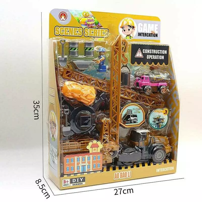 Набір спецтехніки 3389-6 B (48/2) інерційний механізм, 2 машинки, підйомний кран, фігурка героя, інструменти, в коробці
