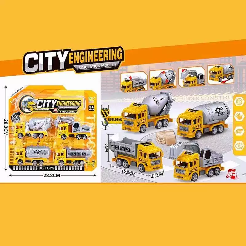 Набір спецтехніки BQ 600-45 (96/2) 4 штуки, будівельний транспорт, інерція, масштаб 1:72, на листі