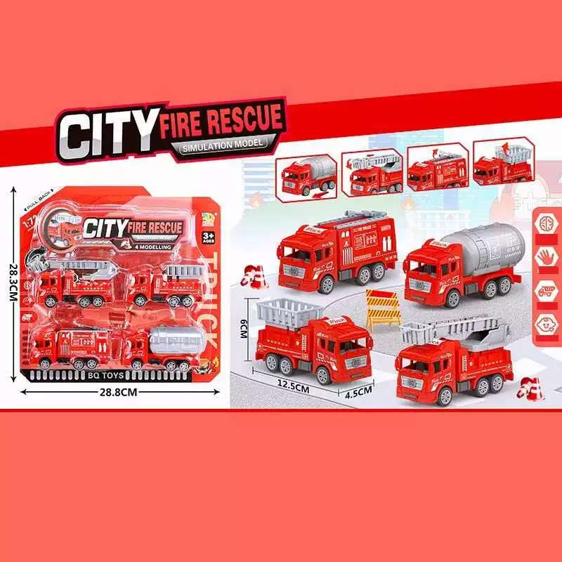 Набір спецтехніки BQ 600-46 (96/2) 4 штуки, пожежна служба, інерція, масштаб 1:72, на листі