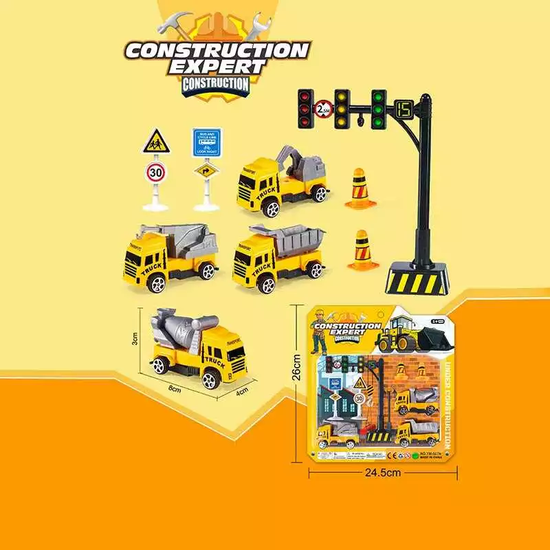 Набір спецтехніки YM 507 N (192/2) будівельні машини, інерція, 3 машини, аксесуари, на листі