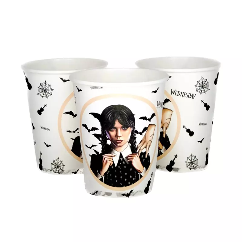 Набір паперових стаканчиків "Венсдей". Об'єм: 250 мл. Висота: 9 см. В упаковці 10 штук стаканчиків.