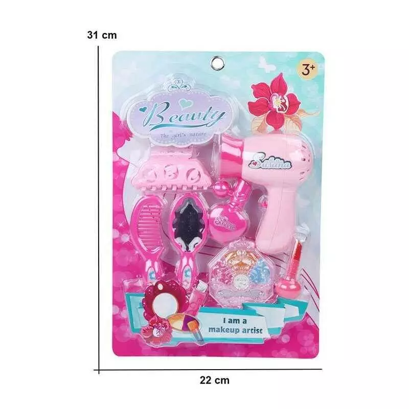 Набір стиліста BE 112 (72/2) фен, крабик, дзеркальце, гребінець, парфуми, тіні, помада, на листі